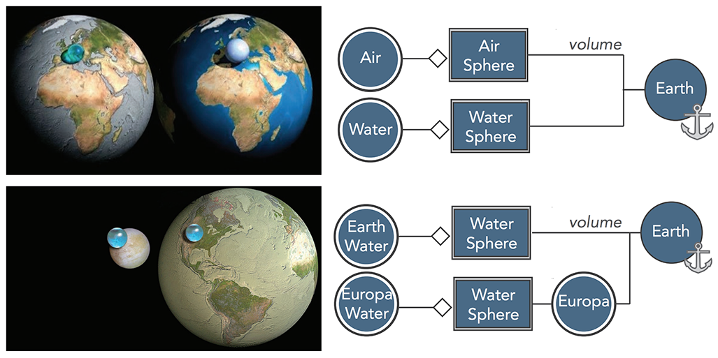 All the water and all the air (A. Nieman, 2010) compares the volume of air and water with that of Earth. All the water on Europa (K. Hand, J. Cook, H. Perlman, 2012) features the volume of water on Earth and Jupiter’s moon Europa.