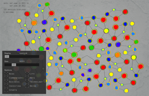 As a response to the current navigational format of online news, which is linear, chronological, and heavily delineated by topics, we propose a more discursive and heuristic model of navigation that will offer readers a variety of lenses, interpretations, and pathways to read through a news site. Through an analysis of two prominent discursive models of knowledge—Foucault's Discursive Formations and Deleuze and Guattari's Rhizome—we can determine an organizational framework that is more representative of human memory and associative connections. This discursive framework is put into practice through the interactive and exploratory medium of data visualization, shown in a sketch-based format.